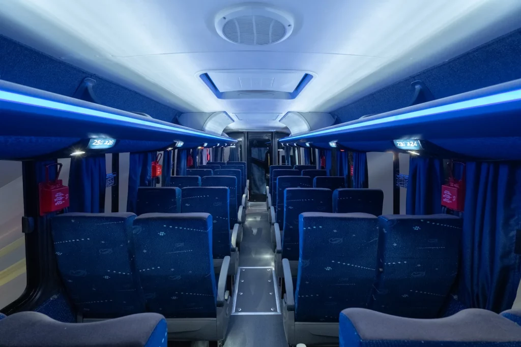 O ambiente interno oferece mais altura, janelas amplas e ventilação otimizada, proporcionando bem-estar e conforto em cada trajeto.