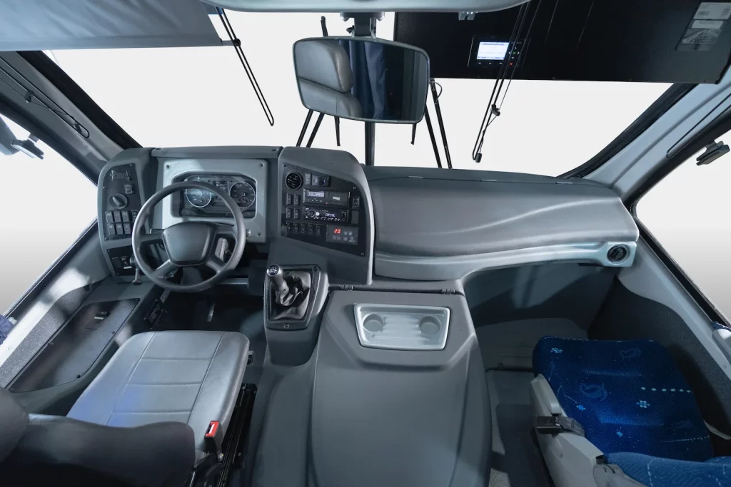 A área do motorista foi projetada para oferecer praticidade no dia a dia. Com excelente visibilidade, comandos acessíveis e saídas de ar-condicionado exclusivas, o posto de condução garante mais controle, conforto e foco na direção.