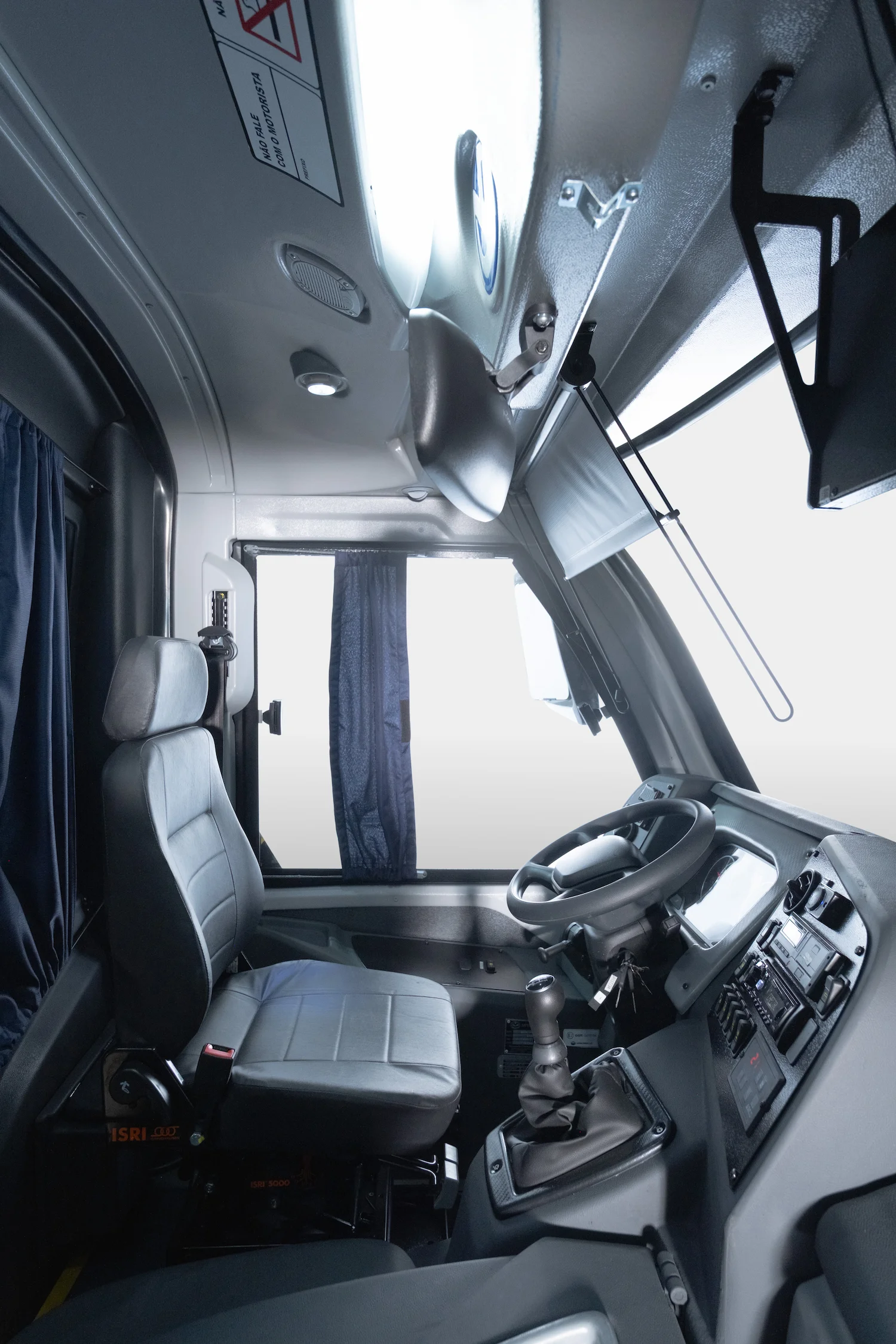A área do motorista foi projetada para oferecer praticidade no dia a dia. Com excelente visibilidade, comandos acessíveis e saídas de ar-condicionado exclusivas, o posto de condução garante mais controle, conforto e foco na direção.